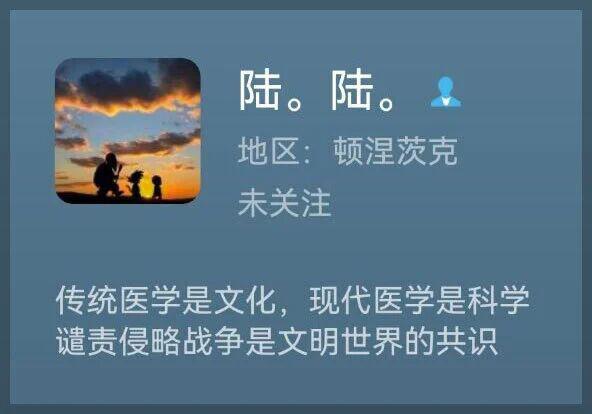 它的个人简介,地区是顿涅茨克,这可以说是乌贼的标配。第一句表明,这是一个反中医的蠢货,第二句表明,乌贼还挺以,当软体动物很爽吗?