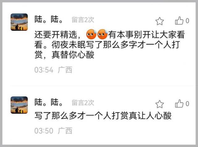 至于打赏,本人从来没有索取打赏,本人愿意写,大家愿意看,打赏随缘,绝不强求。感谢各位大佬给它留条活路,要是一群人打赏,它是不是要去死?
