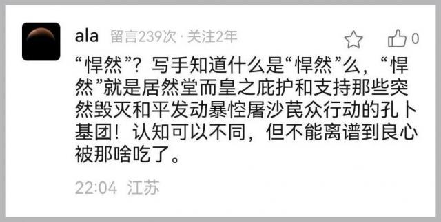 昨天,一个 ID 叫 USMC 的,给本人留言,说"我理解你的苦痛,现在这样压抑的环境中,你不违心说那些话,就被封号了"。本人对这个"四等人" ID 印象很深,关注本人八年了,每次留言都要小心看,阴阳怪气的,不像好人。本人曾经表明自己的立场,却得到一次次的"我理解你的难处",似乎这个 ID 很有格局。这次,当本人说"台湾是中华人民共和国的神圣领土"后,这个 ID 把近期留言全部手动删除,本人也随之将其拉黑,总算再也不看这个闹心的玩意儿了!
