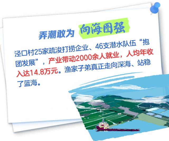 “以前村里穷,1975年大家凑钱办了个小打捞队。现在河水清了、航道通了,我们的船也能开进深海了!”泾口村党委副书记沈海莉的话语里满是自豪,“从两条小渔船起步,到参建港珠澳大桥、打捞万吨巨轮,我们靠着敢闯敢干,硬是闯出了新天地。”